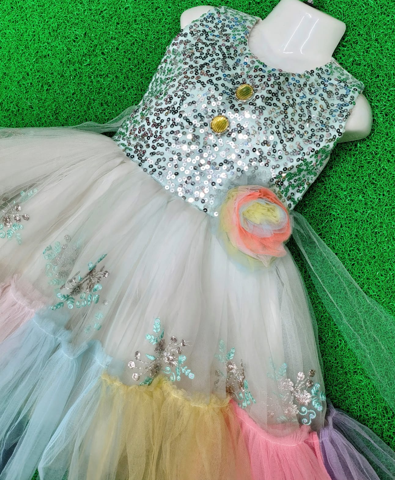 This Is A Stylish Frock For Girls With A Shiny Sequin Bodice.