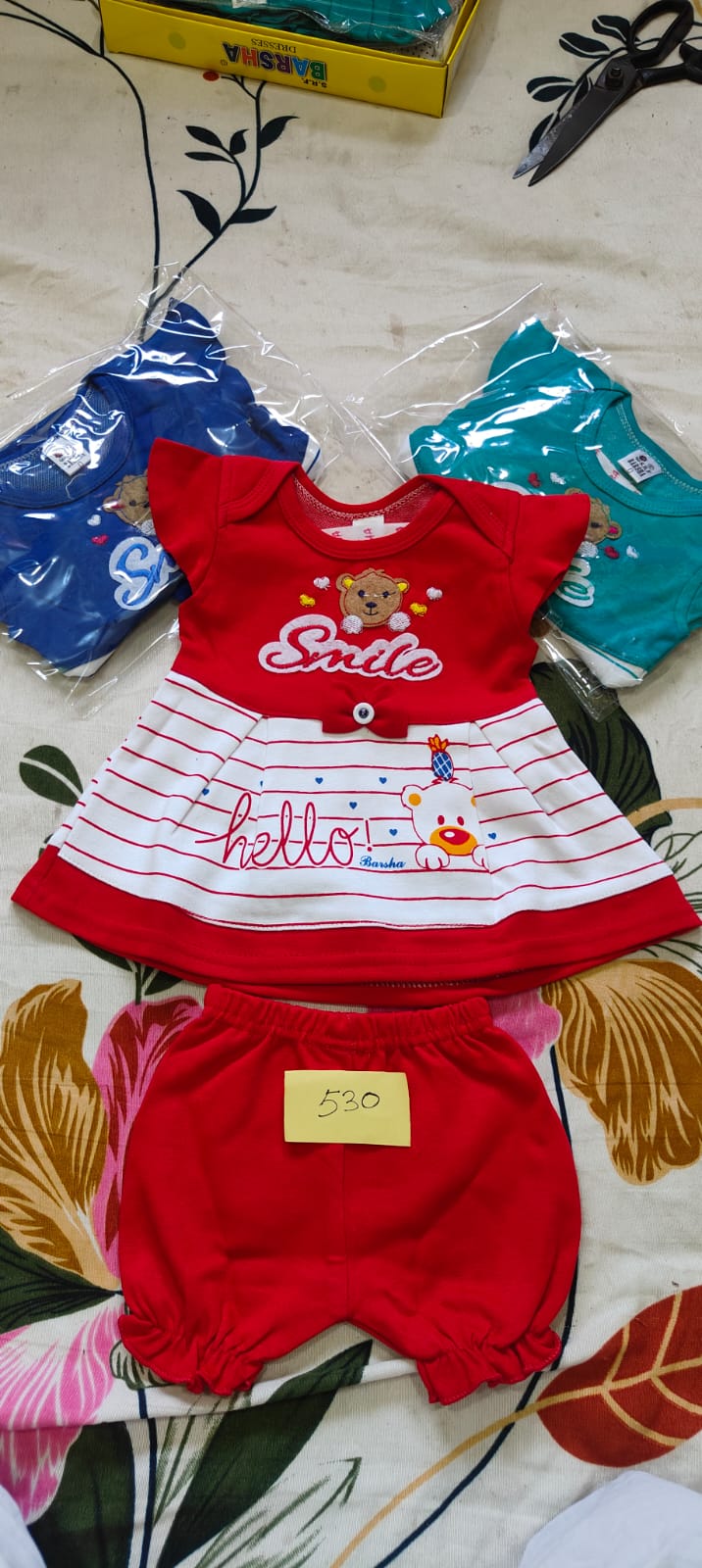 This Adorable Baby Girl Set Includes A Cute Printed Frock With “Love” And Heart Designs.