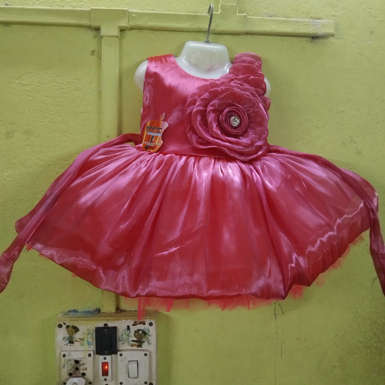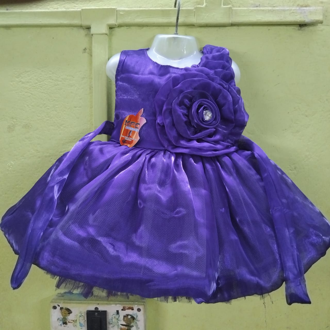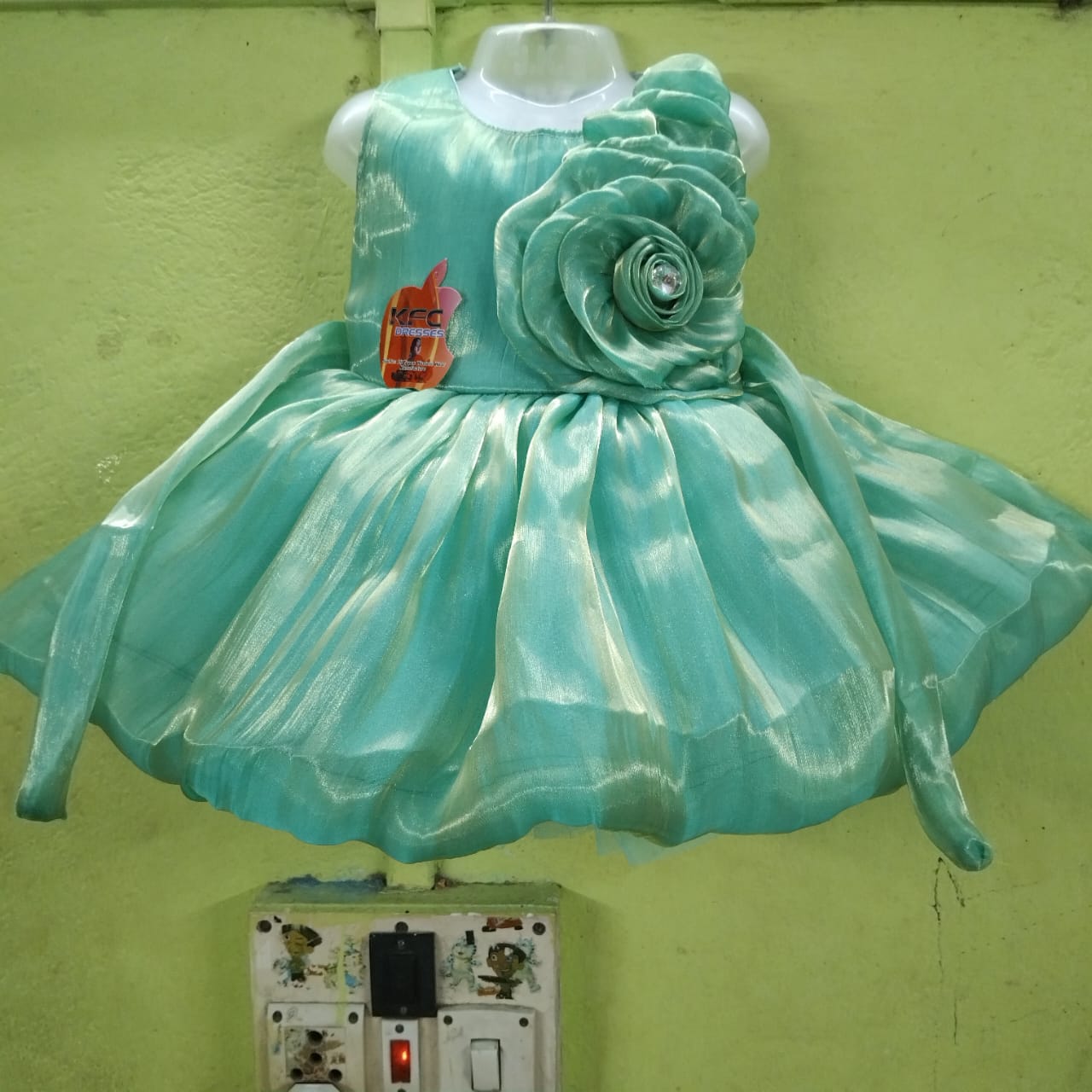 This Stunning Baby Frock Features A Rich Blue Satin Finish With A Voluminous Flare.