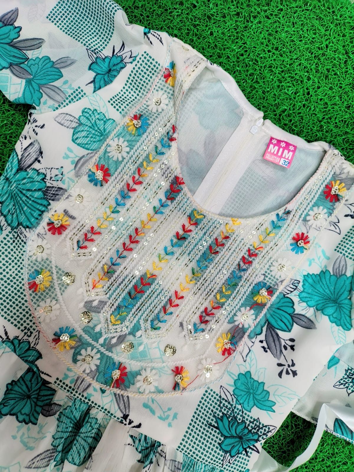 It Features Floral Prints With Colorful Embroidered Designs For A Charming Look.
