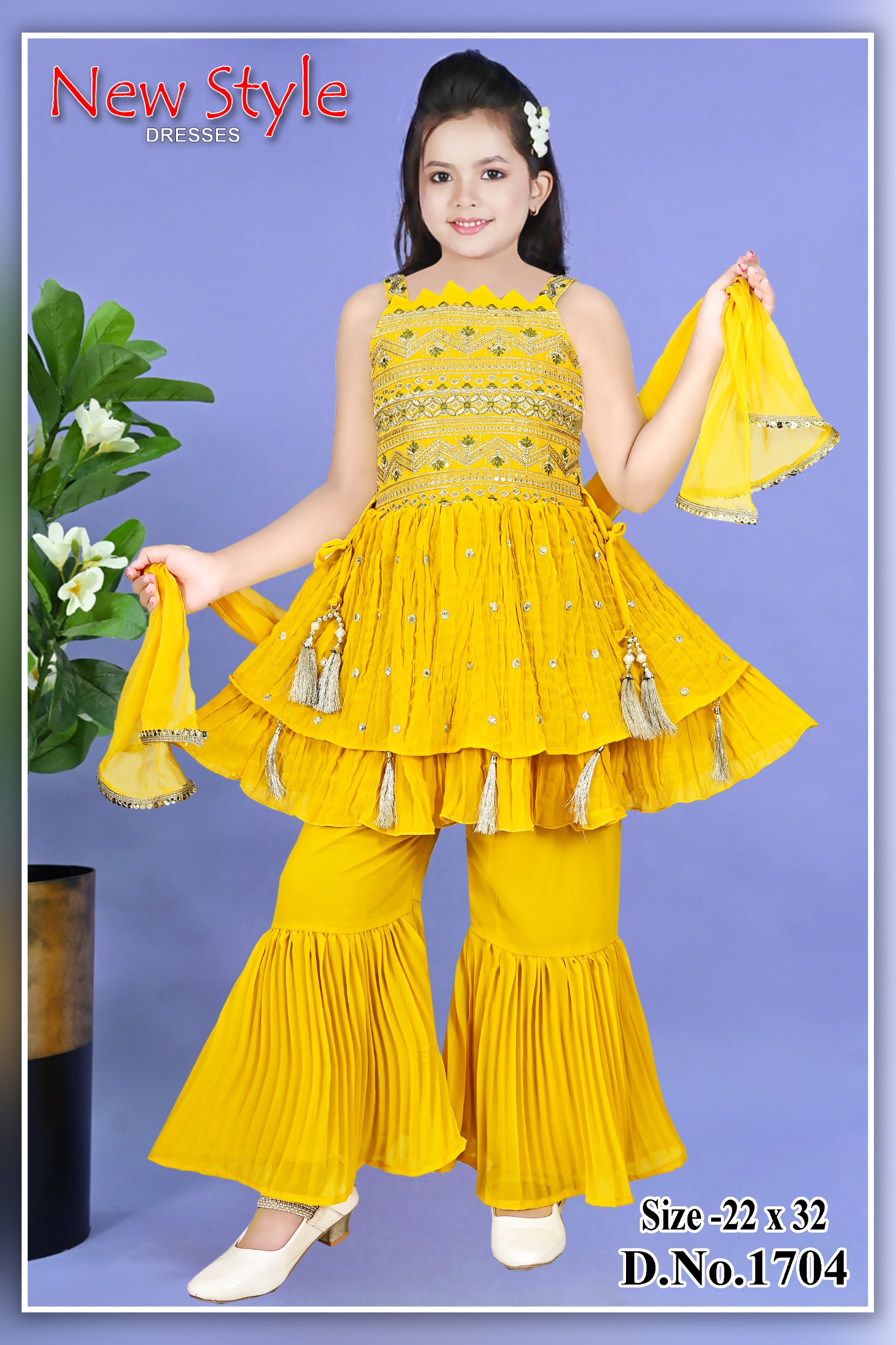 This Is A Stylish Ethnic Sharara Set For Girls, Perfect For Festive Occasions.